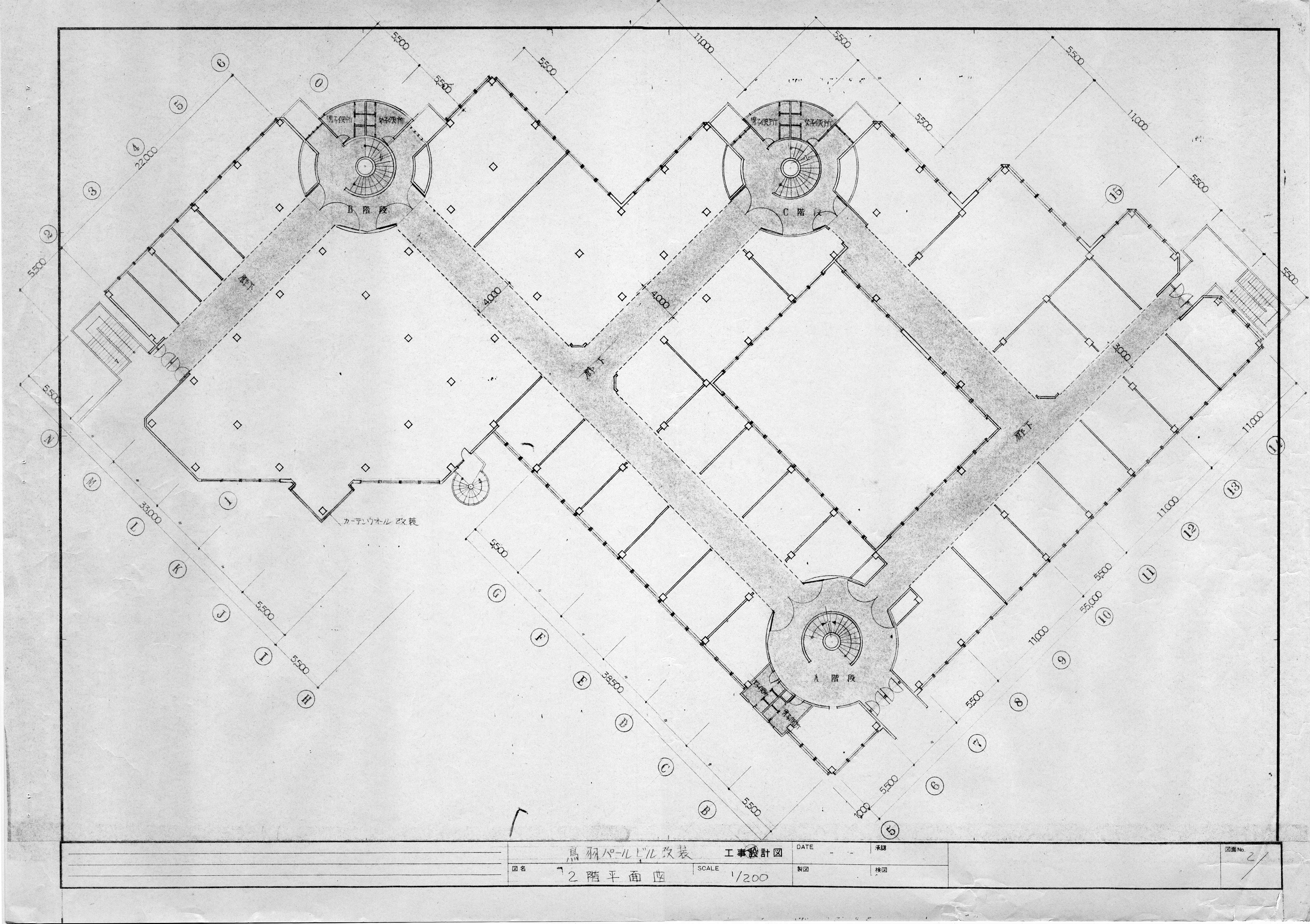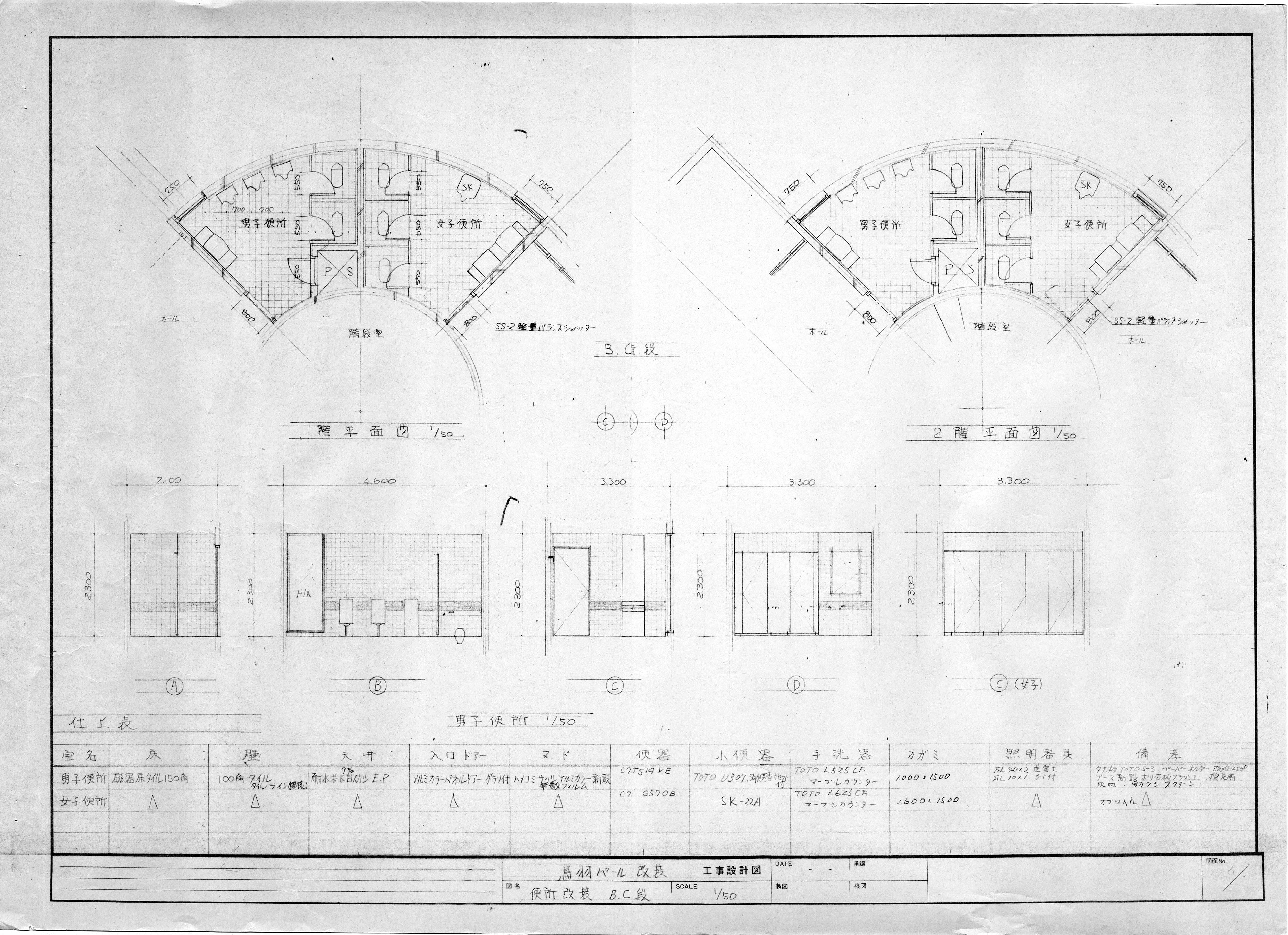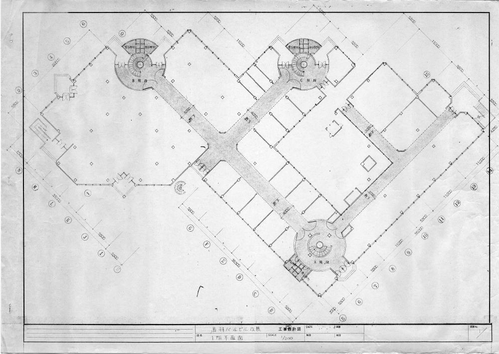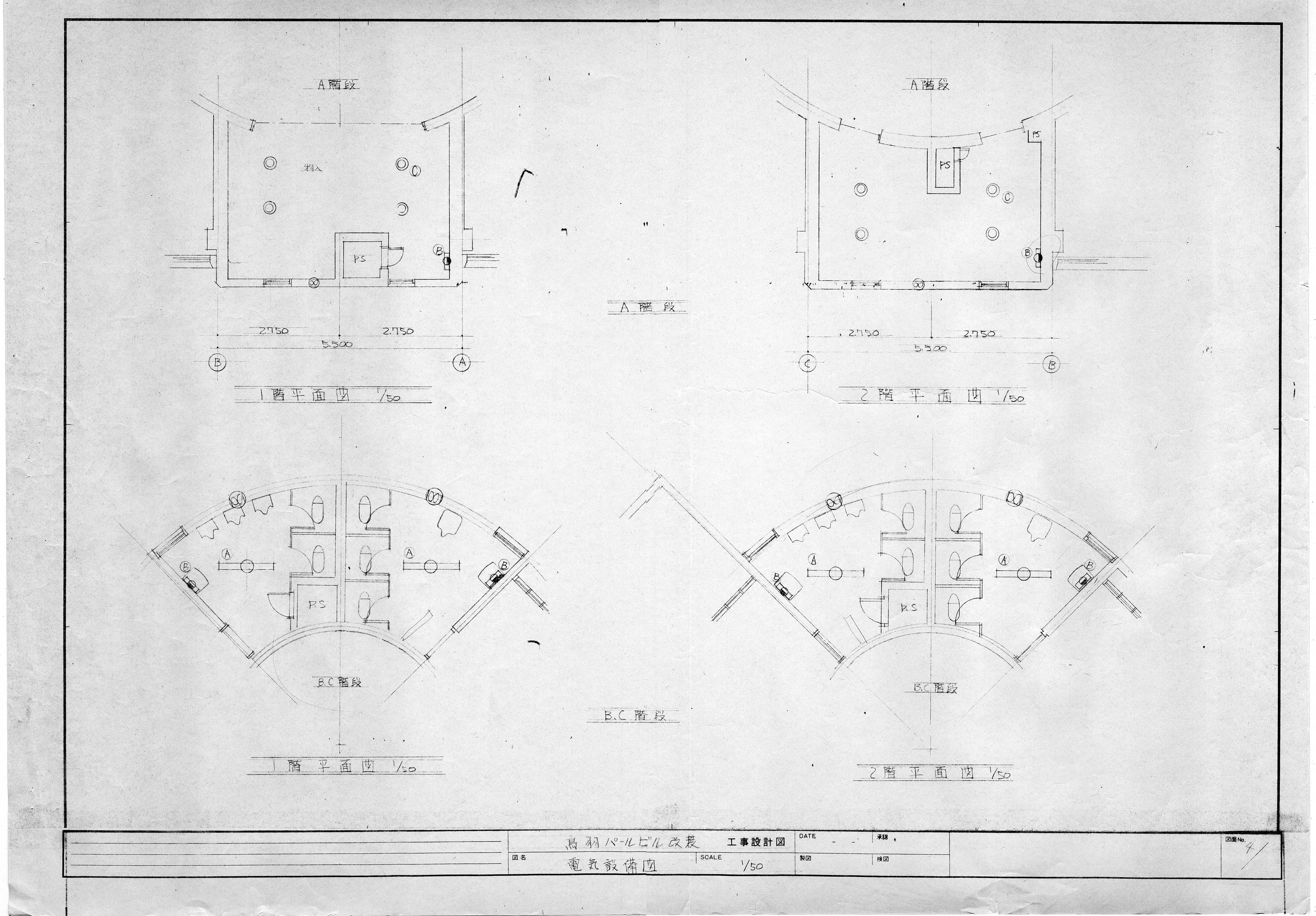 トイレのリニューアルの際に書かれた図面のようです A階段横はトイレを休憩室に改造しています 館内の平面図はオリジナルが見つからないので貴重です 追記 2024.06.01 文字が見にくいので図面をサイズアップしました パールビル資料編のページに戻る